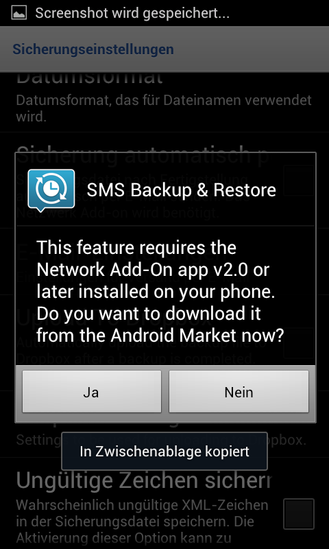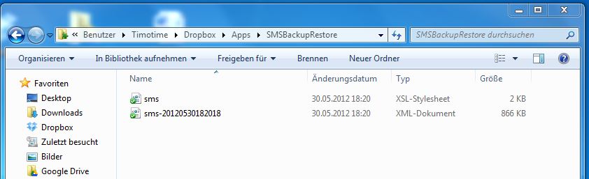 SMS Backup automatisch in die Dropbox schieben