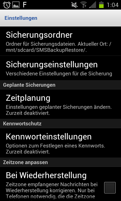 Deshalb nutze ich schon seit einiger Zeit die kostenlose App „SMS Backup & Restore“. Mit dieser App könnt ihr mit nur einem Klick ein komplettes Backup all eurer SMS anlegen und diese dann auf die Speicherkarte legen. Dass Ganze dauert je nach Anzahl der zu sichernden SMS ein paar Minuten. In den Einstellungen könnt ihr jetzt noch einen Zeitplan angeben und somit festlegen das täglich/wöchentlich ein Backup all eurer SMS auf die SD-Karte gespeichert wird. Wenn ihr euer Smartphone jetzt aber mal verliert… tja, dann sind trotzdem alle SMS weg…