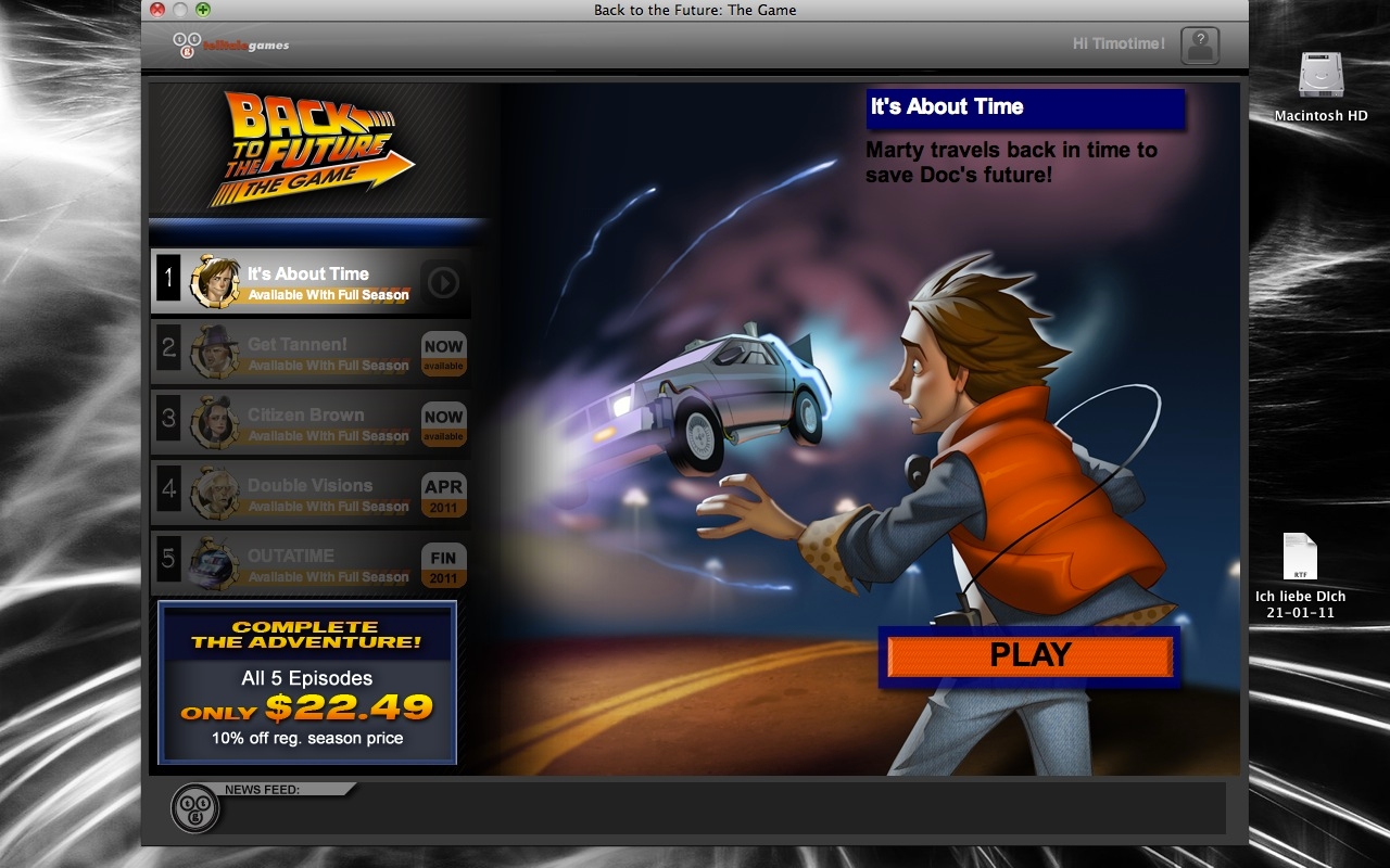 Das Spiel besteht aus 5 Episoden. Den ersten Teil könnt ihr momentan komplett umsonst bekommen. Quasi ein kleiner Vorgeschmack auf das Spiel. Einfach auf http://www.telltalegames.com/bttf gehen und unten seht ihr schon einen großen Banner auf dem steht, dass ihr die erste Episode umsonst bekommt. Ihr müsst euch kurz dort registrieren und könnt unmittelbar danach den Download starten. Das Spielt kommt auf Deutsch zu euch, die Sprachausgabe ist jedoch auf Englisch (mit deutschen Untertiteln).